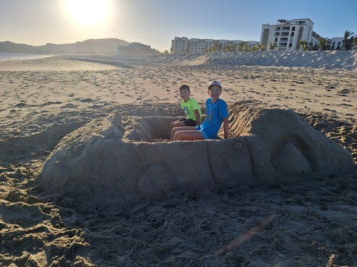 You want to know what was especially great? The sand. That sand in Cabo is incredible. What quickly became a kind of routine for us was that late in the afternoon, we would attempt some sand-related project. One day, we dug a huge hole that went more than 6 feet deep and hit water. Another day we built a two-seater sand car. After dinner, when it was dark, we ventured back down to the beach to see if our car was surviving the incoming tides. We found a couple- as in, an adult, romantic pair of people- sitting in the sand car we had made, enjoying a moment. We were excited to tell them we had built it. They weirdly didn’t seem excited to talk to us about that. And then one day, we built an airplane. I think that was our biggest project of the week, and we decided to make it somewhat evangelistic. We wrote “Isaiah 40:31” on the wings of the plane, which actually did spark a few conversations with by-passers who asked what that meant.
